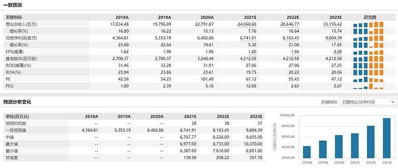 2020年,海天味业归母净利润为64.03亿元,同比增长19.61%。