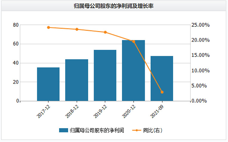 2021年Q3,海天味业归母净利润为47.08亿元,同比增长2.98%。