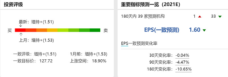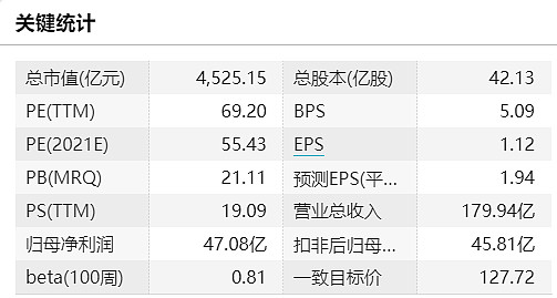 截至2022年1月12日,海天味业总市值为4525亿元,总股本42.13亿股,过去180天Wind一致目标价127.72元!以1月12日收盘价107.42元为参照,海天味业股价仍有超18.90%的上涨空间。(数据来源:Wind)