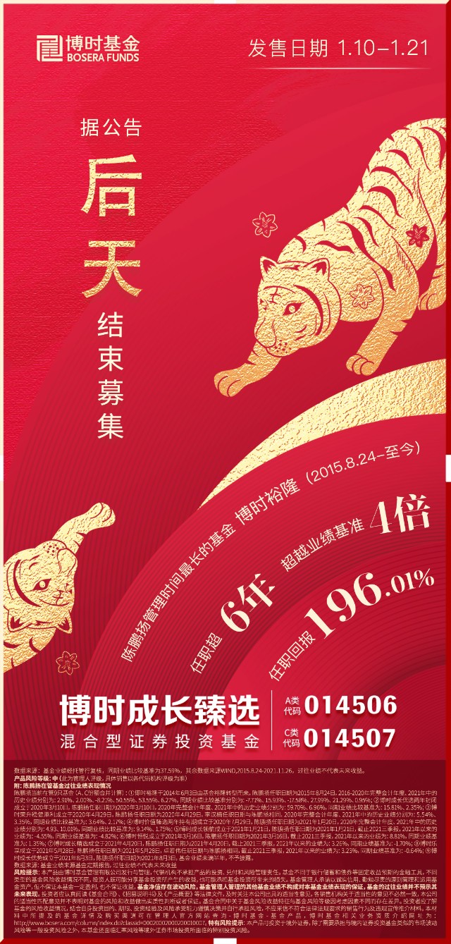 风险提示:基金不同于银行储蓄和债券等固定收益预期的金融工具,不同类型的基金风险收益情况不同,投资人既可能分享基金投资所产生的收益,也可能承担基金投资所带来的损失。基金管理人承诺以诚实信用、勤勉尽责的原则管理和运用基金资产,但不保证本基金一定盈利,也不保证收益,基金净值存在波动风险,基金管理人管理的其他基金业绩不构成对本基金业绩表现的保证,基金的过往业绩并不预示其未来表现。投资者应认真阅读《基金合同》、《招募说明书》及《产品概要》等法律文件,及时关注本公司出具的适当性意见,各销售机构关于适当性的意见不必然一致,本公司的适当性匹配意见并不表明对基金的风险和收益做出实质性判断或者保证。基金合同中关于基金风险收益特征与基金风险等级因考虑因素不同而存在差异。投资者应了解基金的风险收益情况,结合自身投资目的、期限、投资经验及风险承受能力谨慎决策并自行承担风险,不应采信不符合法律法规要求的销售行为及违规宣传推介材料。本材料中所提及的基金详情及购买渠道可在管理人官方网站查询—博时基金-基金产品, 博时基金相关业务资质介绍网址为:http://www.bosera.com/column/index.do?classid=00020002000200010007。