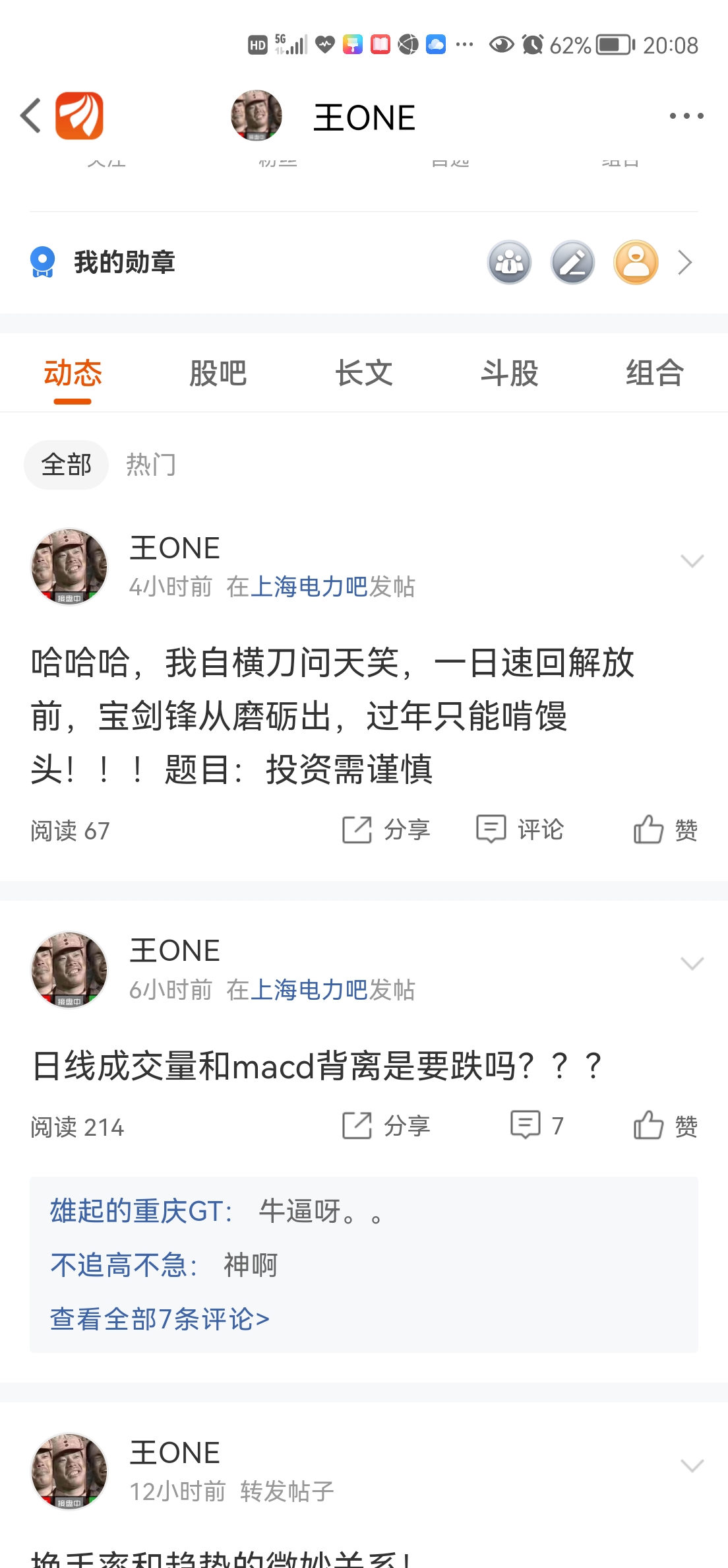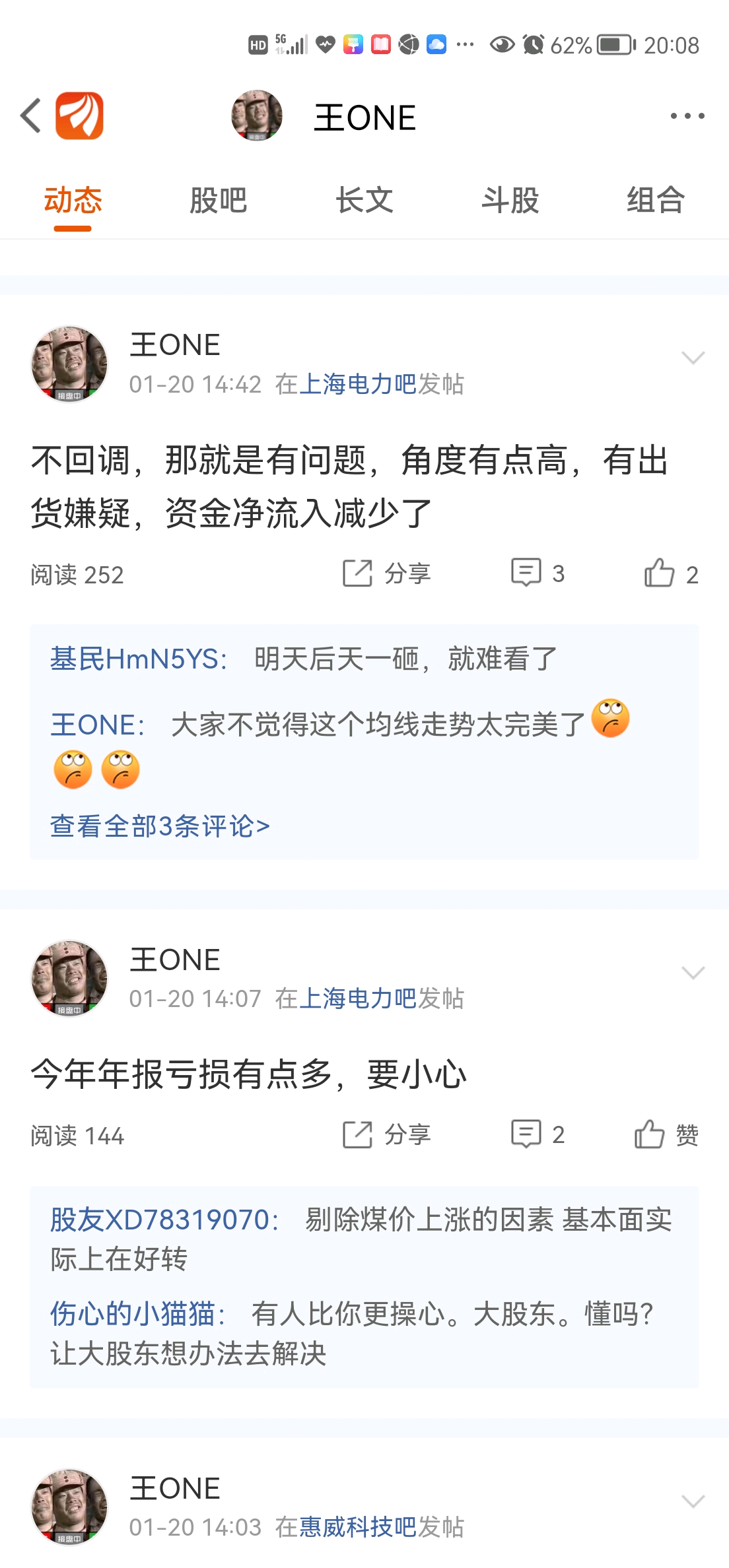 兄弟们,今天很郁闷,上海电力上午好好的,下午就崩盘,昨天低位买进13.8元,有盈利,均线和形态很完美,连续红阳线,心想可以抓个波段,没想到啊1月20日冲高15元回落到14.32元,当时在股吧发个言,均线形态太完美,让兄弟们小心,1月21日中午1点50分时发现成交量下降,价格在涨怀疑是顶背离是不是要跌??也在股吧发言了,万万没想到啊,没设止损就出去办事了,跌停![哭 [哭]](http://gbfek.dfcfw.com/face/emot_default_28x28/emot5.png)