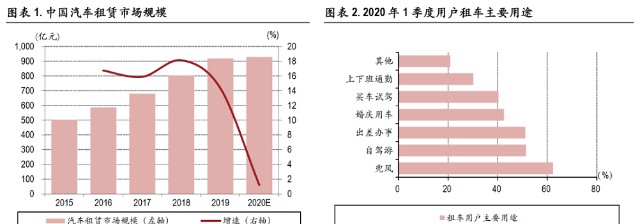 自驾游逐渐成为家庭出游首选,数据持续增长丰富人们出游方式。疫情前,汽车租赁市场规模稳定增长,用户租车以出游出行为主。自驾游数据的火爆是对旅行社打包产品的冲击因素之一。