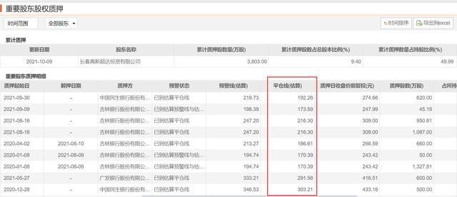 对此,长春高新在互动平台表示,大股东相关股份质押为在相关银行借款提供的质押担保,与质押式回购交易平仓线的设定不完全一致,公司会提示股东充分关注股价波动情况,避免发生相关风险。