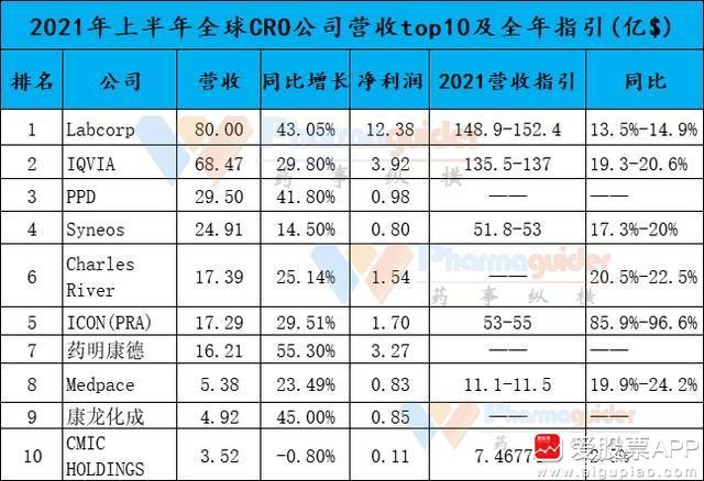 下图是全球2021年上半年CRO公司排名,即便大如药明也就能排个全球第七,离老大哥实验室集团还有5倍的差距,康龙也就只能排个第九,而且,即便实验室集团营收份额这么大,人家的市占率也并不高。