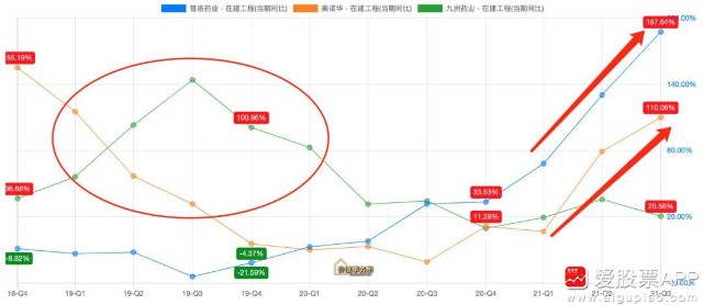 看下图,九洲药业近两年业绩涨得飞快,活生生一幅脱离原料药企的模样,全靠其2019年疯狂扩产能(近期有所放缓),而近一年,扩产能扩得最猛的,就要属普洛和美诺华,所以,别看这两者近期业绩不佳(被原料药周期拖累),过段时间,就会如九洲一样吓人了。