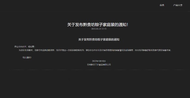 1月18日,贵州高端粽子品牌-黔贵坊在其官网发布黔贵坊品牌2022年端午粽子产品调整通知。据黔贵坊相关人士表示,为适应黔贵坊品牌定位及消费市场需求,让大众消费者人人都吃得起,能品鉴到贵州粽子的味道。黔贵坊今年将推出一款袋装粽子,粽子单只重量将会在130-160克之间,口味将匹配最具贵州特色的味道,市场售价将在9.8元-19.8元之间。