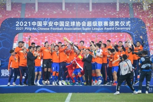 1月4日,2021中国平安中超联赛在广州正式闭幕,山东泰山时隔11年再次夺冠。2021年,新冠疫情带来的影响仍在持续,作为中超联赛连续八年的官方冠名商,中国平安在保险保障、医疗服务和科技领域积极合作,保证联赛平安、有序进行。颁奖仪式上,中国足球协会主.席陈戌源与中国平安董事会秘书兼品牌总监盛瑞生一同为山东泰山队颁发火神杯。