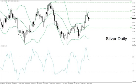 昨日银价再度收出长下影阴线,并构成孕线组合,当前出现回升势头,但CCI重新进入常态区域后继续下行,因此预计后市银价将在23.64-23.94的区间波动,如突破区间上方看24.04/24.50,如跌破下方看23.44/23.00。