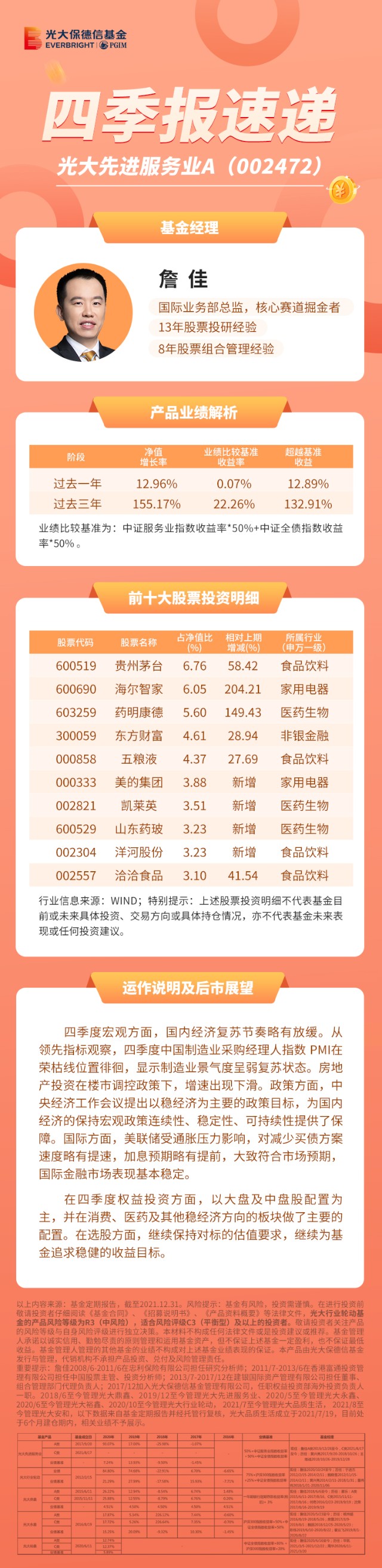 基金经理詹佳:解读光大先进服务业四季报