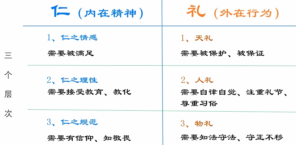 通过仁和礼三个层次的分析,我们可以知道仁和礼其实都是儒家思想的理想和目标。