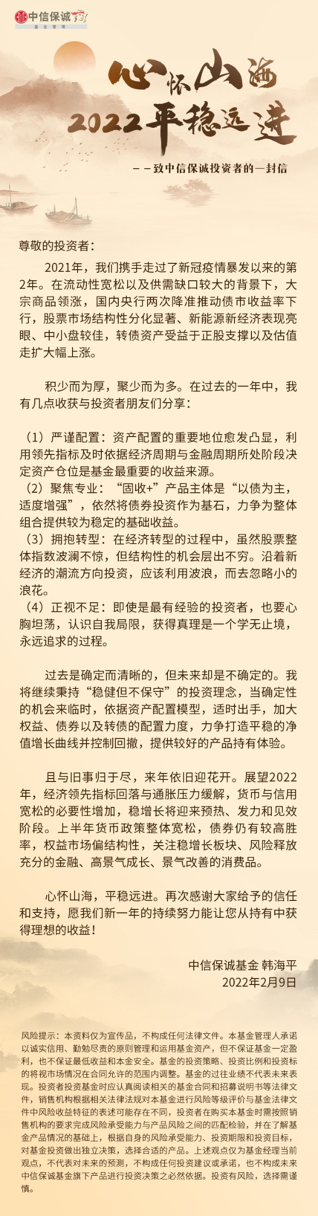 【中信保诚韩海平】2022,心怀山海,平稳远进