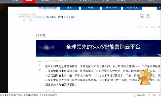 英迈思上海分公司严经理告诉央视记者,网民在问答、百科、论坛等寻求帮助时,所看到的问题和答案,很多都是由他们这样的口碑公司冒充真实用户做出来的。