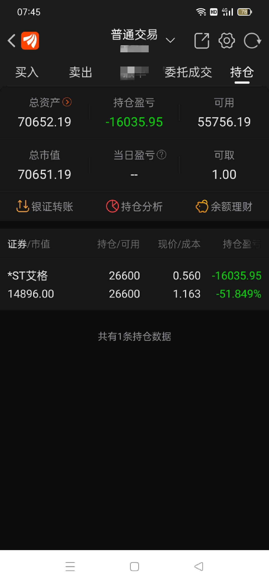 $*ST艾格(SZ002619)$ 我是15年股灾入市,没多久大盘就来了第二轮暴跌,短短5天损失了40%+的本金并被迫暂时退出股市!19年牛市前再次进入股市,结果在这一轮结构性牛市当中自己买的股票始终跑不赢大盘,偶尔有涨幅可以的中途也会被洗下车!遇到下跌则是损失惨重!结果两年下来又损失了一小半的本金,累计亏损超过10万!
