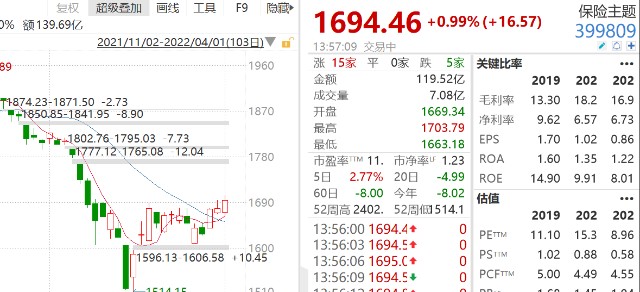 保险也走出了上涨的步伐,不建议加仓,继续装死观察。