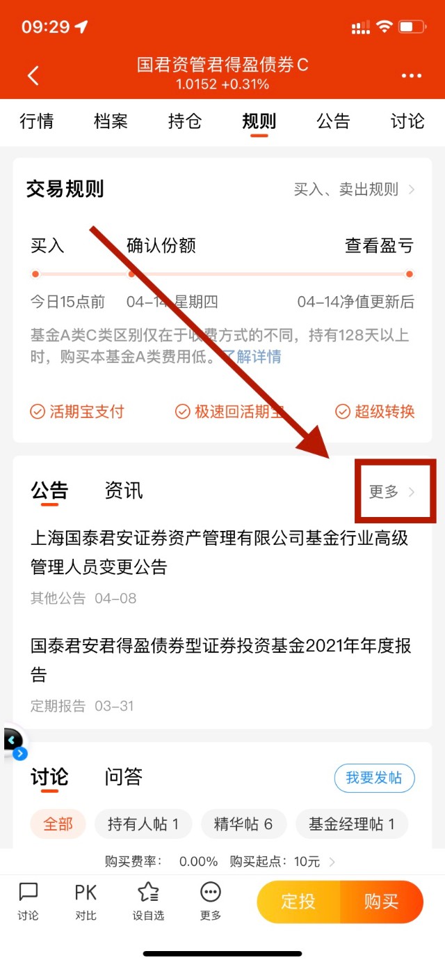 01 第一步:在天天基金中找到自己想看的产品,并进入产品详情页