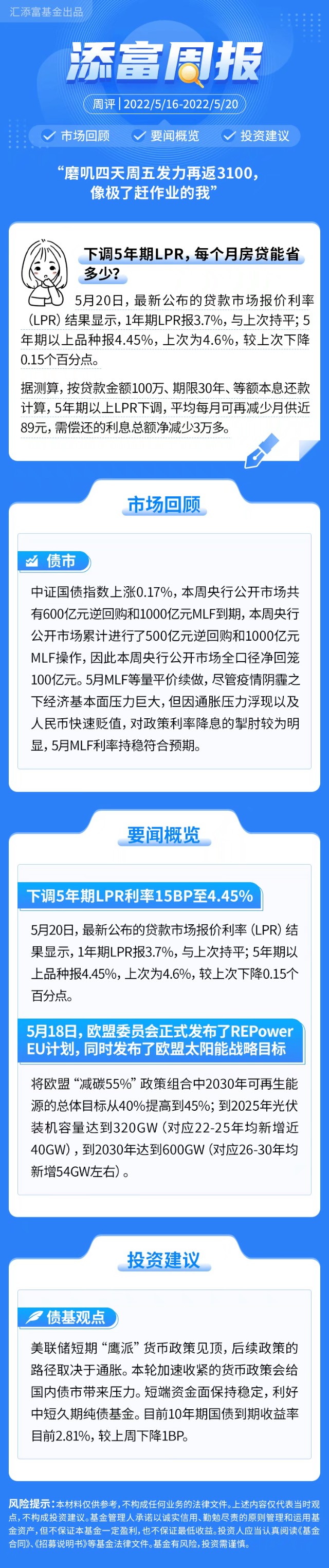 风险提示:投资有风险,入市需谨慎。本材料中涉及的观点和判断仅代表我们当前时点的看法,基于市场环境的不确定性和多变性,所涉观点和判断后续可能发生调整或变化,不构成任何投资建议。我国基金运作时间较短,不能反映股市发展的所有阶段。基金的过往业绩并不预示其未来表现,基金管理人管理的基金业绩亦不构成未来基金业绩表现的保证。基金管理人提醒投资人基金投资应当注意“买者自负”原则。投资人应当认真阅读《基金合同》、《招募说明书》、《产品资料概要》等基金法律文件以详细了解产品风险收益特征,根据自身能力审慎决策,独立承担投资风险。上述内容除特别注明外,版权归汇添富基金所有,未经允许,请勿转发。