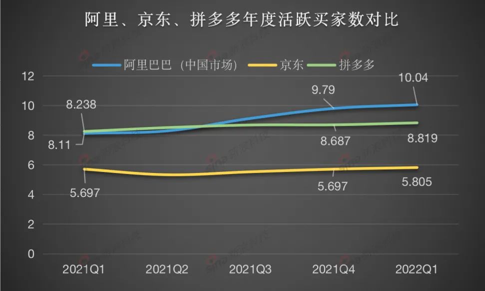 从年活跃买家数来看,阿里、京东、拼多多三家均告别了高速增长时代,进入平稳阶段。