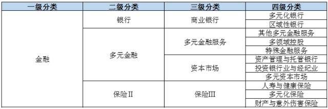金融行业细分为3个二级行业、4个三级行业以及11个四级行业,主要涵盖证券、银行、保险、互联网金融、投行等细分行业。