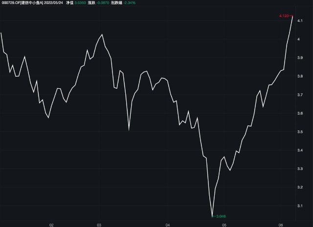 不独新能源产业链基金,有些不涉及新能源产业链的基金走势也是如此。比如建信中小盘,此前最大回撤29%,最近两个月涨幅35%。