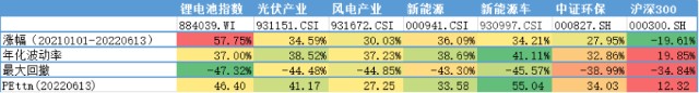 常见新能源指数2021年以来相关指标数据对比
