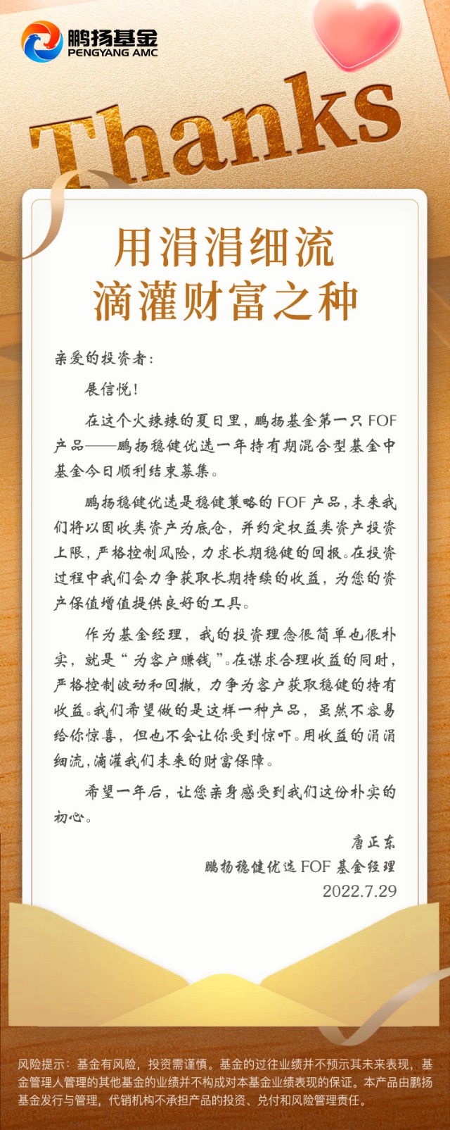 【鹏扬稳健优选FOF结募】用涓涓细流,滴灌财富之种