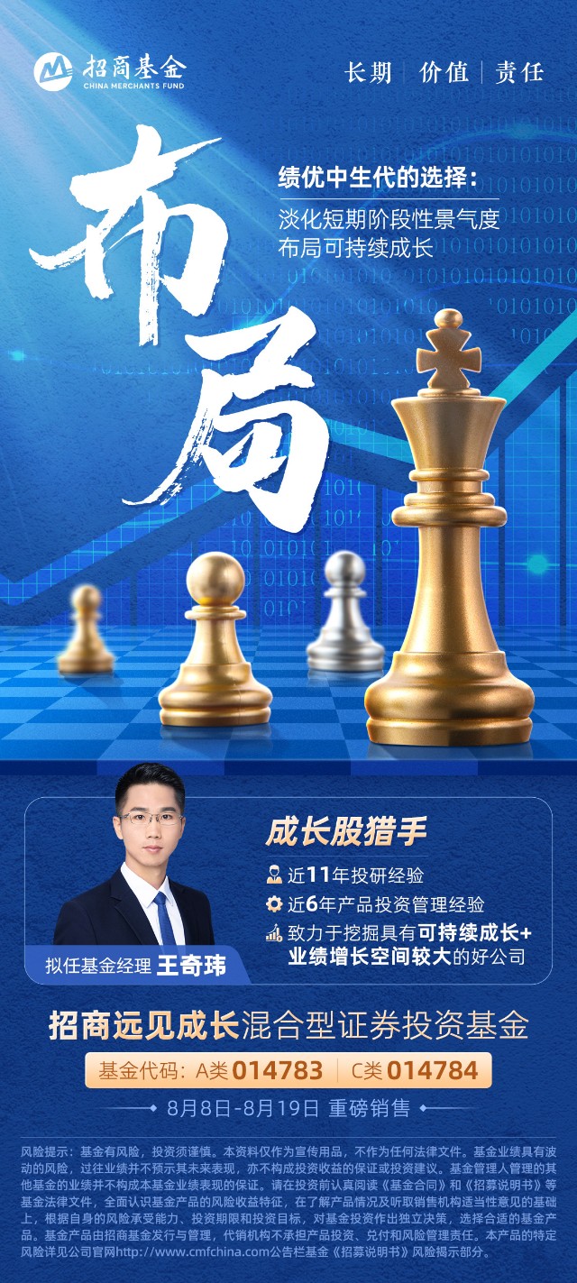 成长股猎手王奇玮掌舵,挖掘业绩增长空间较大公司,招商远见成长混合8月8日重磅发售!
