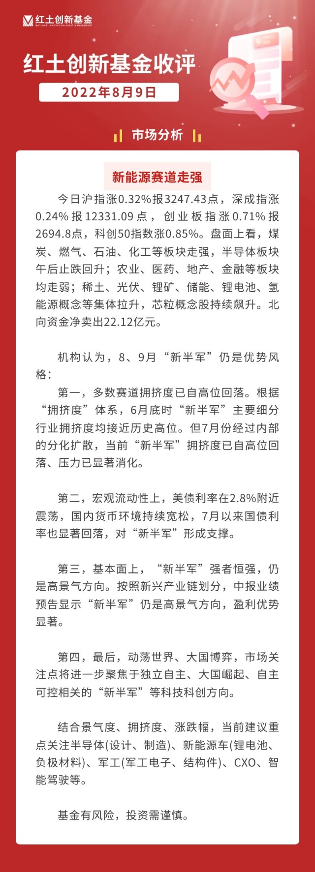 【红土创新收评】新能源赛道走强(2022-8-9)