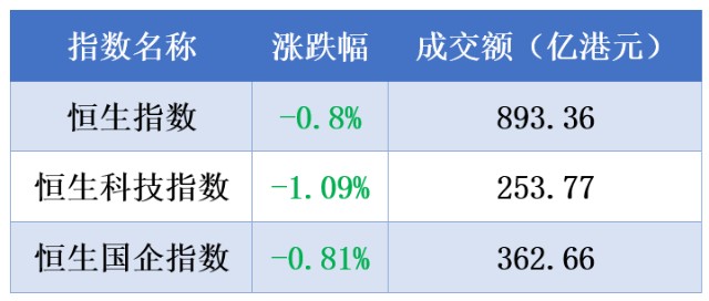 8月18日恒生指数收跌0.8%报19763.91点,恒生科技指数跌1.09%报4192.64点,恒生国企指数跌0.81%报6700.42点。大市成交893.36亿港元,南向资金净买入6.83亿港元。沪港通净卖出0.03亿港元;深港通净买入6.85亿港元。