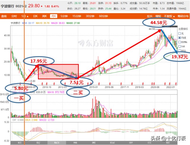 宁波银行 月K线图