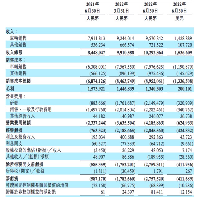 其中车辆销售额为95.708亿元,较2021年同期增长21%,较2022年第一季度环比增长3.5%。