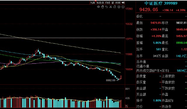 医疗指数9月15日开始偏离了 20日均线后,就一路下跌,昨天开始止跌,今天大幅反弹,距离上方 20日压力也近了,和古中牛一样目前仍是亏损的继续等着吧,不冒险加仓,等到了 20日线附近再决定是加还是减。