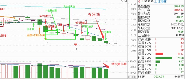 今天同样收盘跌破五日线