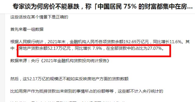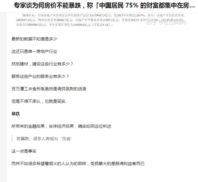 专家谈为何房价不能暴跌,称「中国居民 75% 的财富都集中在房产上,稳住大盘是稳财富」,对此如何评价?