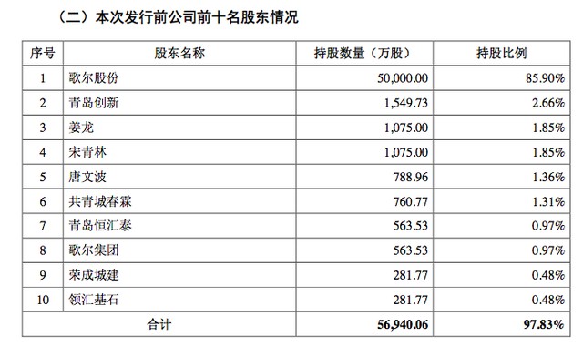 此外,姜龙直接持有歌尔微公司1075万股股份,占比1.85%。歌尔集团持有歌尔微563.53万股股份,占比0.97%。
