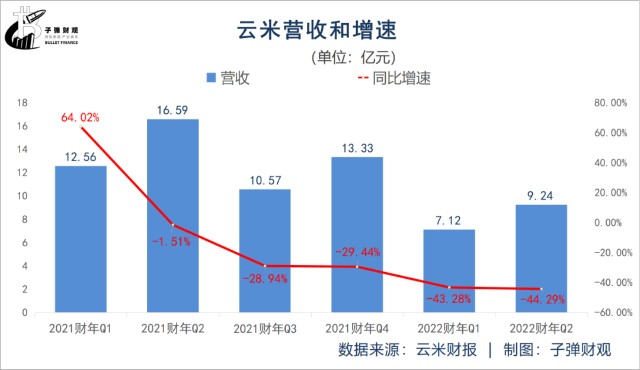 与此同时,传出“凉意”的还有云米财报数据的表现。根据财报,最近6个季度,云米的营收增速分别为64.02%、-1.51%、-28.94%、-29.44%、-43.28%和-44.29%,呈逐季放缓的态势。