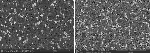 负极极片表面硅氧颗粒的分布(左图)循环前、(右图)循环后