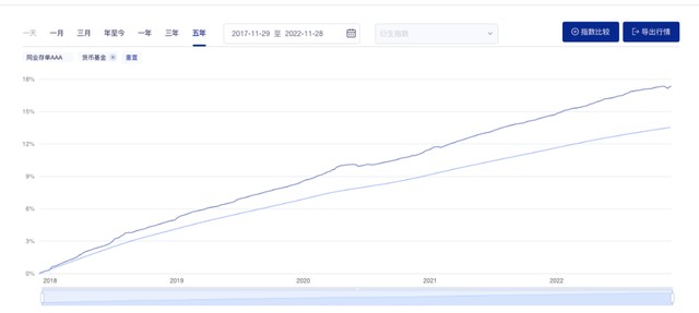 与货币基金相比,中证同业存单AAA指数的历史表现也更好,近5年年化收益率3.25%(同期货币基金指数为2.58%)。