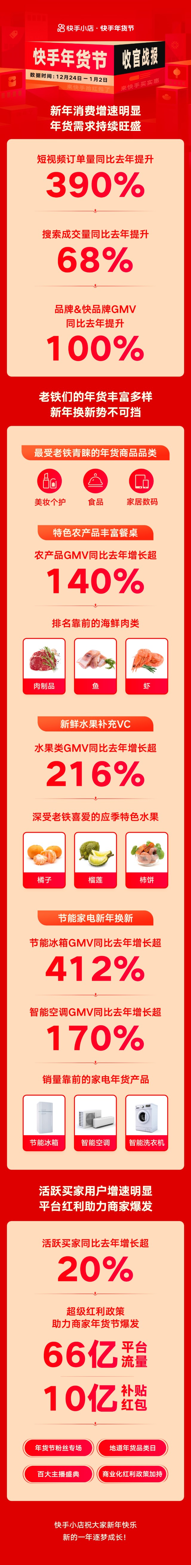 通过携手商家带来优质性价比年货,快手电商在平台营造浓厚年味,帮助商家在多变的市场环境中抓住确定性的经营机会,充分促进了消费需求提振与消费潜力释放。