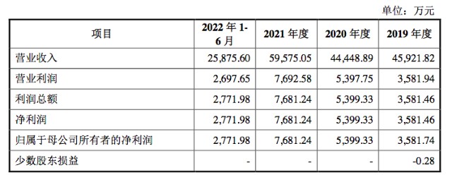 2019年、2020年、2021年和2022年上半年,古麒绒材分别实现营收4.592亿元、4.445亿元、5.958亿元和2.588亿元。