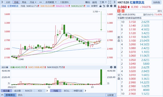 消息层面,去年12月26日,红星控股拟计划通过集中竞价、大宗交易方式减持公司股份共计不超过美凯龙股本的3%的股份。
