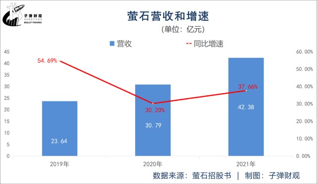 先看营收。招股书显示,2019年、2020年和2021年萤石的营收增速依次为54.69%、30.20%和37.66%,呈总体放缓态势。