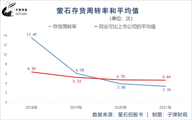 而且,从2020年起,萤石的存货周转率已下滑至同业可比上市公司的平均值以下。