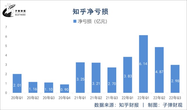 财报显示,在过去的11个财季里,知乎的净亏损额依次为2.01亿元、1.16亿元、1.10亿元、0.90亿元、3.25亿元、3.21亿元、2.70亿元、3.83亿元、6.14亿元、4.87亿元和2.98亿元。