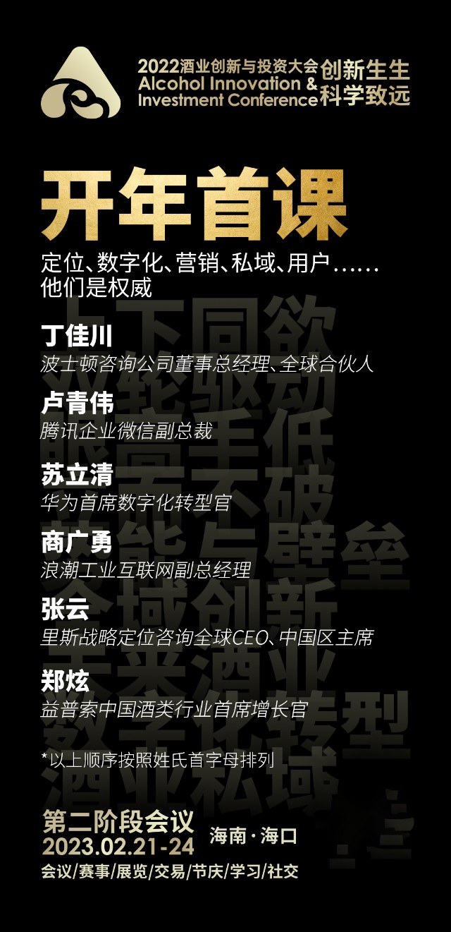 2月21日-24日,“创新生生 科学致远”2022酒业创新与投资大会第二阶段会议,将在海南海口举办。