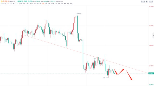 日内黄金策略分享:黄金上方1865/1870分批空,止损1876,目标下看1860-58先改保本止损,回撤1853-50再做减仓,剩余持单下看60日线1840附近测试