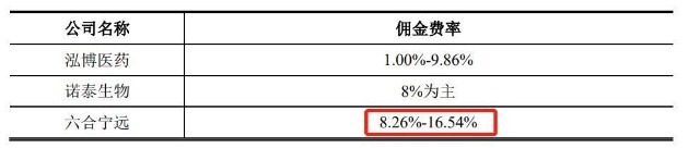 可以看出,佣金及推广费的增长是发行人销售费用逐年上升的重要原因。其中佣金费率(即佣金占涉及佣金的销售收入比)波动较大,如下表所示,针对具体订单发行人支付的佣金费用率较高,处在8.26%至16.54%之间,可比公司诺泰生物多为8%,而泓博医药低至1%。业内人士都知道,医药行业是商业贿赂的重灾区,而发行人高于同行的佣金水平或许也有为该情况添砖加瓦之嫌。