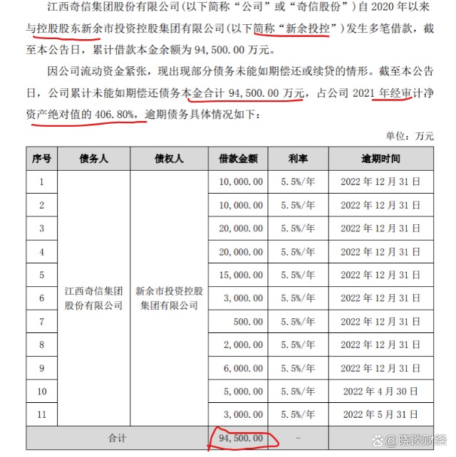 新余国资入主后,为了支持公司的发展,通过借款的方式再次向公司投资,根据2023-001号公告,新余投控向公司提供多笔借款,累计提供借款9.45亿元,公司逾期9.45亿,就目前来看,基本上无法回款呢。结合2022年第三季度报告报表及2020年半年报,2020年至2023年9月,公司短期借款余额大幅度下降,公司短期借款从20年的13.18亿元下降至现在的100万元,短期借款减少额约13亿;新余国资为公司提供了9.45亿借款,公司货币资金余额从3.85亿减少至1.38亿,减少了2.47亿。可以合理的猜测,新余国资的9.45亿借款已经归还了st奇信的短期借款。