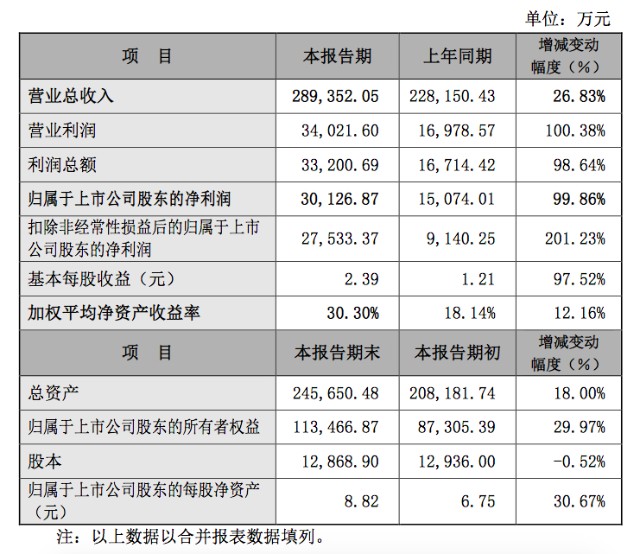 同期的归属于上市公司股东的净利润为3.013亿元,上年同期的净利润为1.507亿元,同比增长99.86%。扣除非经常性损益后的归属于上市公司股东的净利润为2.753亿元,上年同期为9140.25万元,同比增长201.23%。这也是盐津铺子近10年里,净利润增速最高的一年。