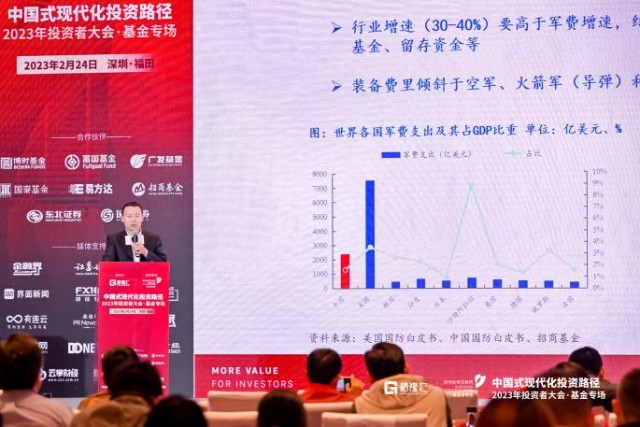 其中,深耕机械、军工等制造类行业,并于2014-2020年在担任证券分析师期间连续七年携团队摘得新财富最佳分析师军工装备行业第一名,现任招商基金研究部总监兼基金经理的冯福章博士发表了《国防现代化建设背景下的投资机会与挑战》主题演讲。