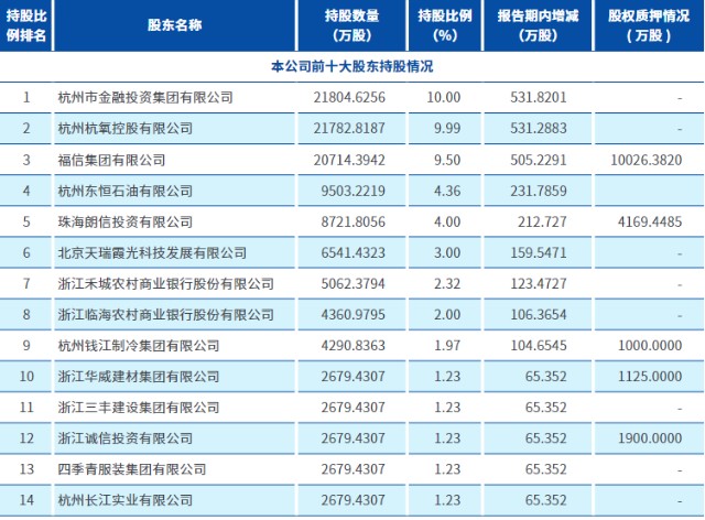 另一方面,杭州联合银行被质押股份达到1.97亿股,占总股本的9.02%。其中,被质押股权涉及司法冻结的数量为4989.36万股,占总股本的2.29%。值得一提的是,该行并列第十大股东浙江诚信投资有限公司质押比例超70%,已失去对杭州联合银行股东大会的表决权。